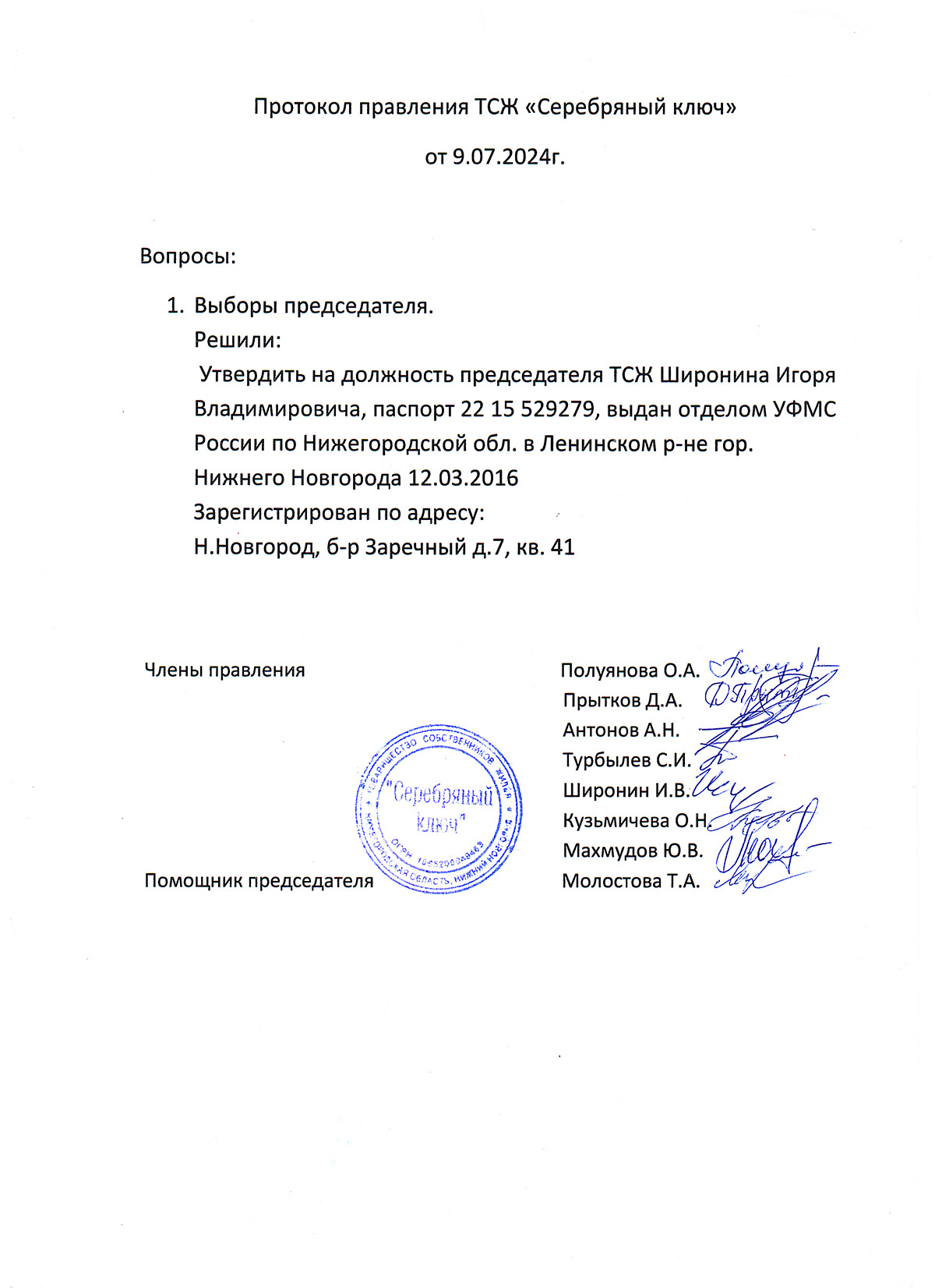 Протокол избрания председателя 2024г